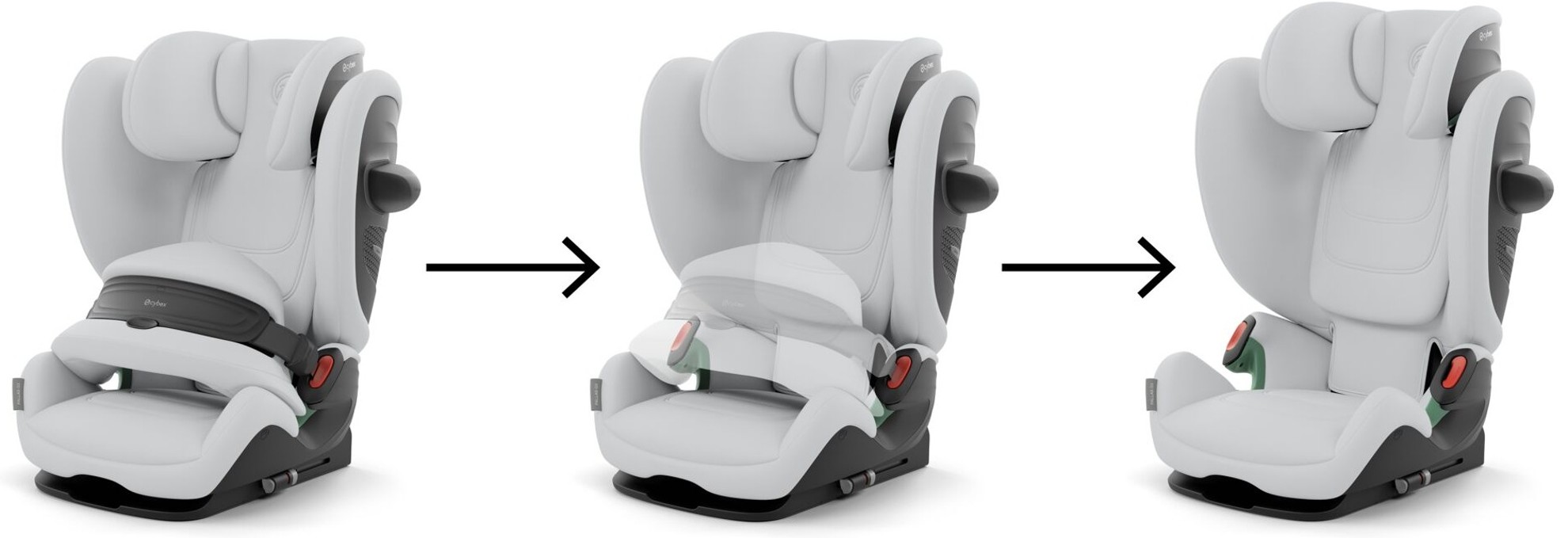 PALLAS G3 i-Size je autosedačka 2v1. Pre prvú fázu s bezpečnostným pultom je schválená výhradne pre použitie so systémom ISOFIX vrátane povinného použitia s horným popruhom (Top Tether). V druhej fáze od minimálne 15 kg váhy dieťaťa je možné použiť autosedačku aj bez systému ISOFIX.