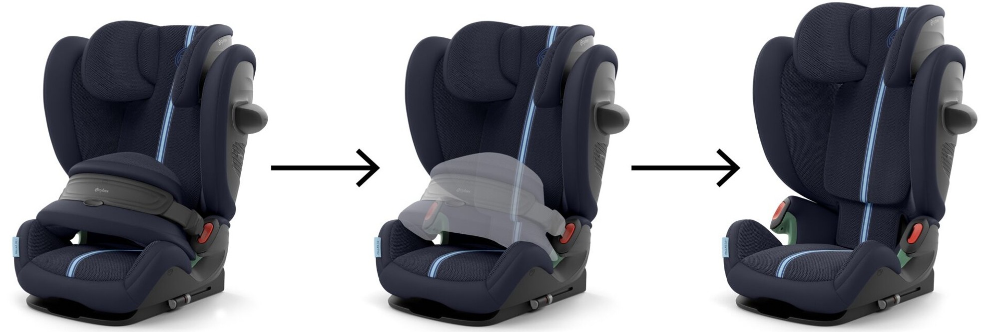 PALLAS G3 i-Size je autosedačka 2v1. Pre prvú fázu s bezpečnostným pultom je schválená výhradne pre použitie so systémom ISOFIX vrátane povinného použitia s horným popruhom (Top Tether). V druhej fáze od minimálne 15 kg váhy dieťaťa je možné použiť autosedačku aj bez systému ISOFIX.