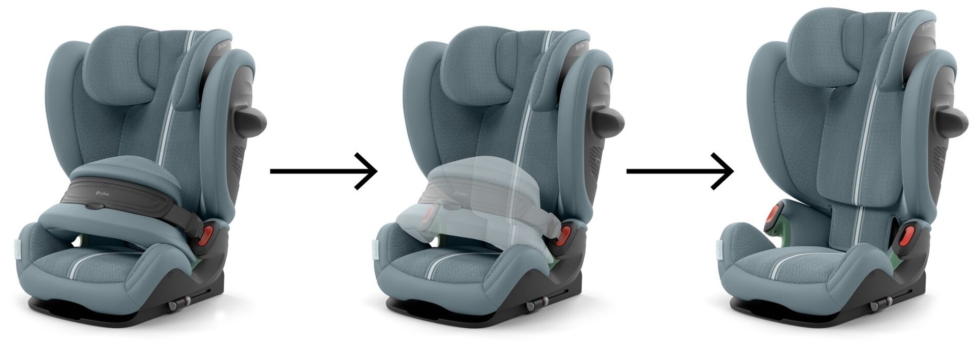 PALLAS G3 i-Size je autosedačka 2v1. Pre prvú fázu s bezpečnostným pultom je schválená výhradne pre použitie so systémom ISOFIX vrátane povinného použitia s horným popruhom (Top Tether). V druhej fáze od minimálne 15 kg váhy dieťaťa je možné použiť autosedačku aj bez systému ISOFIX.